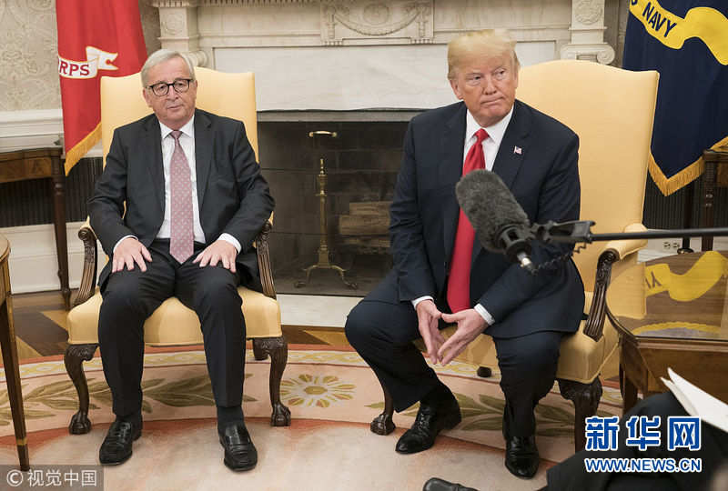 2018年7月25日,美國華盛頓,美國總統(tǒng)特朗普與歐盟委員會主席容克會面。(圖片來源:視覺中國)