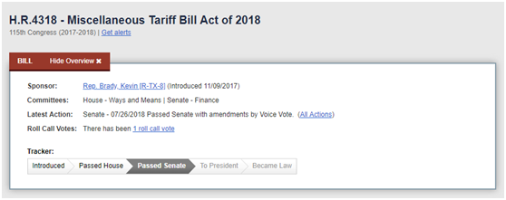 根據(jù)英國(guó)路透社的報(bào)道,這個(gè)法案名叫Miscellaneous Tariff Bill,中文叫“綜合關(guān)稅法案”(也被譯成“關(guān)稅雜項(xiàng)法案”)。