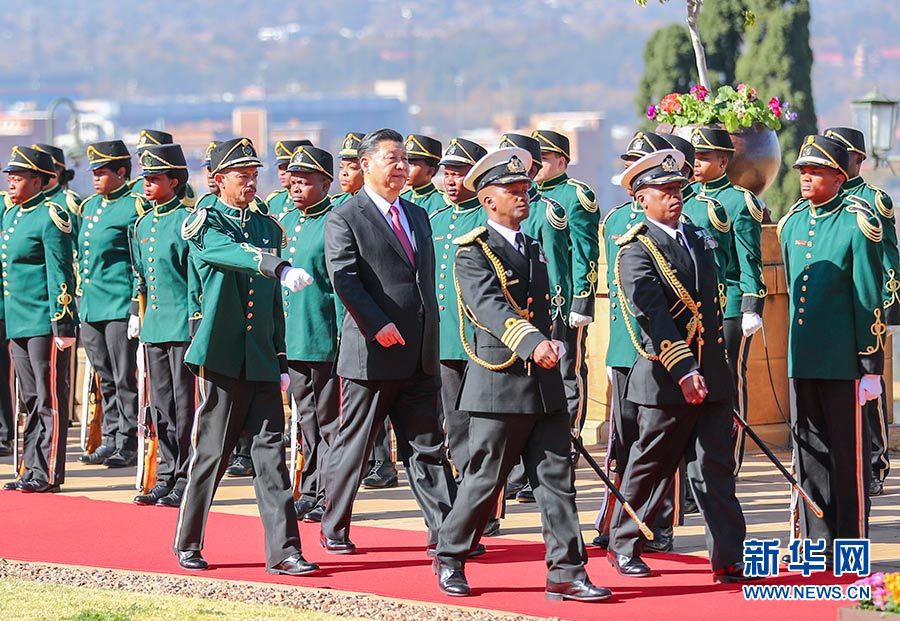 7月24日,國家主席習(xí)近平在比勒陀利亞同南非總統(tǒng)拉馬福薩舉行會談。會談前,拉馬福薩為習(xí)近平舉行隆重歡迎儀式。新華社記者謝環(huán)馳攝