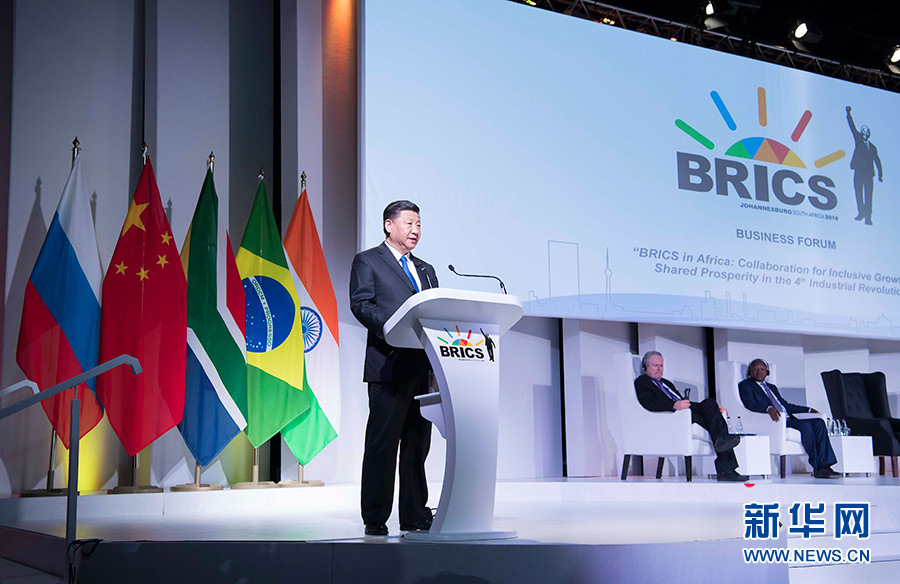結(jié)束對南非國事訪問后,25日上午,習(xí)主席離開比勒陀利亞,抵達(dá)約翰內(nèi)斯堡出席金磚國家領(lǐng)導(dǎo)人第十次會晤。當(dāng)天下午,他便應(yīng)邀出席金磚國家工商論壇,并發(fā)表《順應(yīng)時(shí)代潮流 實(shí)現(xiàn)共同發(fā)展》的重要講話。