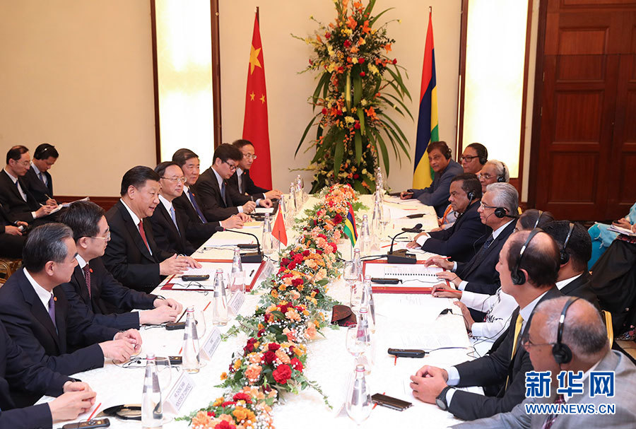 習(xí)近平強調(diào),中毛都是發(fā)展中國家,有著相似的發(fā)展經(jīng)歷和發(fā)展任務(wù)。當(dāng)前,中毛關(guān)系發(fā)展面臨新的重要機遇。我們要保持高層交往勢頭,加強政府部門、立法機構(gòu)、地方等往來,繼續(xù)在涉及彼此核心利益和重大關(guān)切問題上相互理解和支持。要挖掘務(wù)實合作潛力,提高雙方貿(mào)易和投資自由化便利化水平,早日商簽中毛自由貿(mào)易協(xié)定,發(fā)揮毛里求斯參與共建“一帶一路”的獨特區(qū)位優(yōu)勢,加強溝通對接,深化廣泛領(lǐng)域合作。要加強人文交流,促進相互了解。中方愿同毛方加強氣候變化南南合作,密切在國際事務(wù)中協(xié)作,維護發(fā)展中國家共同利益。
