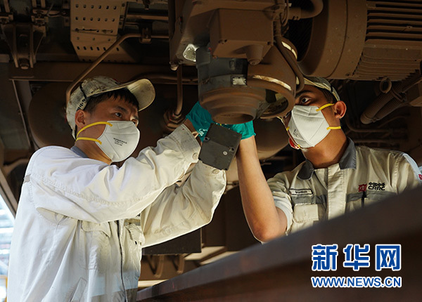 在維保公司位于馬來西亞芙蓉市的維保車間,25歲的阿茲希姆說,自己工作一年多來學(xué)到了許多有關(guān)軌道車輛運(yùn)行和相關(guān)系統(tǒng)的知識?!皝碜灾袊膶<液蛦T工都很友善,樂于把技術(shù)傳授給我們本地員工,”他說。