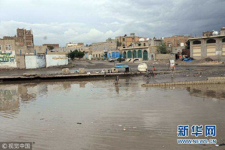 當(dāng)?shù)貢r(shí)間2018年10月23日,也門(mén)薩那,連日暴雨導(dǎo)致街道積水嚴(yán)重。(圖片來(lái)源:視覺(jué)中國(guó))