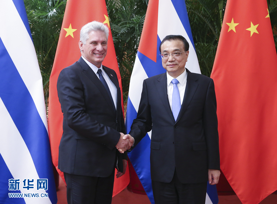 11月8日,國務(wù)院總理李克強(qiáng)在北京人民大會堂會見來華進(jìn)行國事訪問的古巴國務(wù)委員會主席兼部長會議主席迪亞斯-卡內(nèi)爾。 新華社記者姚大偉攝