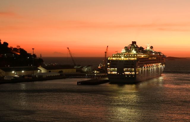 11月13日,“太平洋探索者”號郵輪停泊在巴新首都莫爾茲比港岸邊。(新華社記者龐興雷攝)