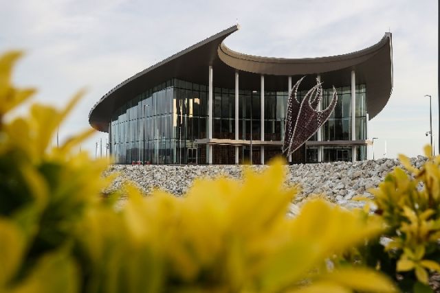 APEC大廈坐落于海濱,是此次APEC會議場館之一。主建筑造型像是巴新土著居民特有的傳統(tǒng)木舟。昔日,土著居民正是駕著這種木舟乘風破浪,開啟周邊貿易。正門前,12米高的金屬雕塑像木舟極具辨識度的雙帆,又形似巴新國鳥天堂鳥雙翼展向空中,澳大利亞設計師以此寓意“為開啟繁榮貿易之旅揚帆”。