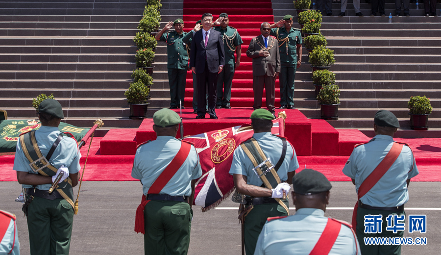 當?shù)貢r間上午10時30分許,習近平乘車抵達議會大廈,受到達達埃熱情迎接。兩國領導人登上檢閱臺。軍樂隊奏中巴新兩國國歌?,F(xiàn)場鳴21響禮炮。習近平在達達埃陪同下檢閱儀仗隊。檢閱畢,習近平同巴新方主要官員握手,達達埃同中方陪同人員握手。兩國領導人共同前往議會大廈會見廳,巴布亞新幾內(nèi)亞議長波馬特等在大廈外迎接并陪同會見。