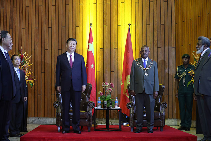 11月16日,國家主席習近平在莫爾茲比港會見巴布亞新幾內(nèi)亞總督達達埃。新華社記者 丁林 攝