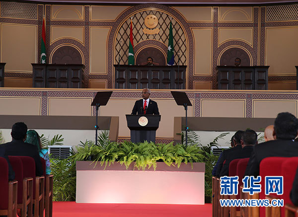 新華社馬累11月17日電(記者朱瑞卿 唐璐)馬爾代夫新任總統(tǒng)薩利赫17日在首都馬累國(guó)家足球場(chǎng)舉行的議會(huì)特別會(huì)議上宣誓就職。