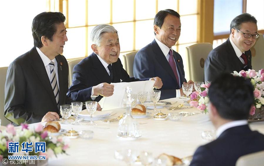 當(dāng)?shù)貢r(shí)間2018年12月17日,日本東京,日本明仁天皇在皇宮與日本首相安倍晉三領(lǐng)導(dǎo)的政府高官共進(jìn)年終午餐。(圖片來源:視覺中國(guó))