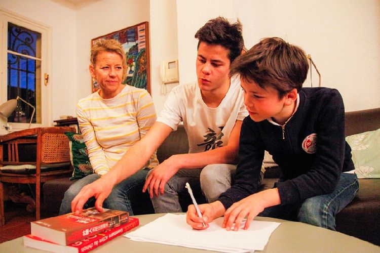漢娜·丘吉爾和兩個(gè)兒子在家練習(xí)中文。新華社記者連振攝