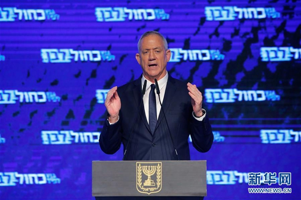 以色列藍白黨領(lǐng)導(dǎo)人甘茨4月10日晚發(fā)表講話,承認在議會選舉中失敗。這是4月9日,在以色列特拉維夫,以色列藍白黨領(lǐng)導(dǎo)人甘茨對支持者講話。新華社發(fā)(吉爾·科恩·馬根 攝)