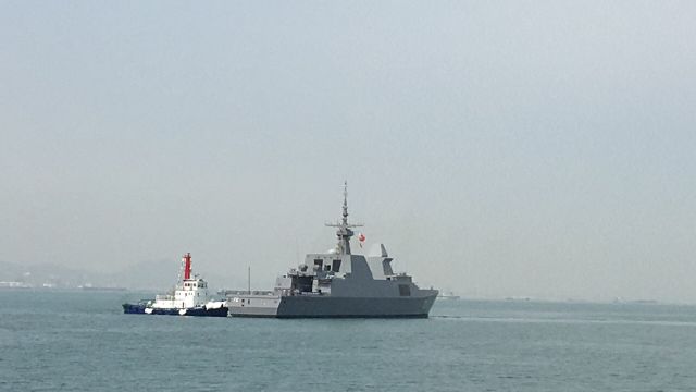 據(jù)了解,新加坡海軍“堅強”號護衛(wèi)艦(舷號72),排水量3200噸,長114.8米,寬16.3米,桅高35米,航速27節(jié)。
