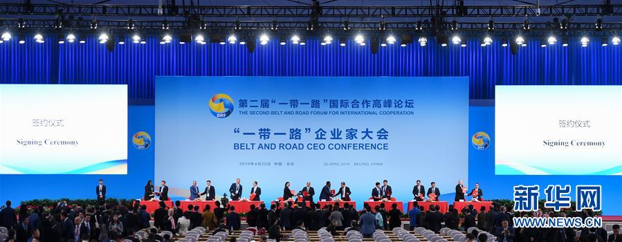 4月25日,首屆“一帶一路”企業(yè)家大會(huì)在北京舉行。這是簽約儀式現(xiàn)場(chǎng)。新華社記者 陳曄華 攝