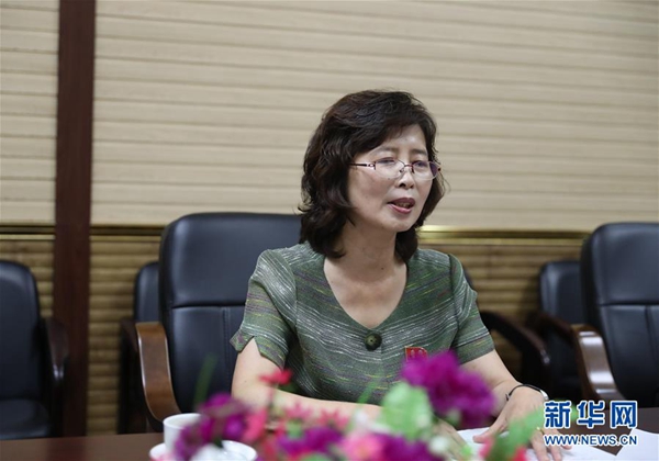 7月24日,朝鮮國(guó)家觀光總局觀光宣傳局局長(zhǎng)金春姬在平壤接受新華社記者采訪。新華社記者 程大雨 攝