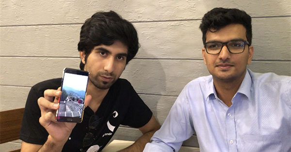 帕爾特·達(dá)爾(左)和達(dá)克什·卡迪安展示他們?nèi)ブ袊恼掌P氯A社記者趙旭攝