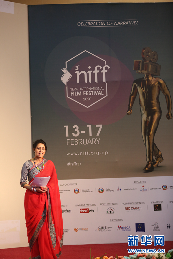 2月17日,尼泊爾加德滿都市政大廳,優(yōu)雅美麗的主持人在第三屆尼泊爾國(guó)際電影節(jié)在加德滿都閉幕儀式上。本屆電影節(jié)2月13日開始,一共有來自40個(gè)國(guó)家和地區(qū)的80部影片入選,其中中國(guó)和哈薩克斯坦聯(lián)合拍攝的《音樂家》作為開幕電影,備受關(guān)注。記者 唐薇 攝