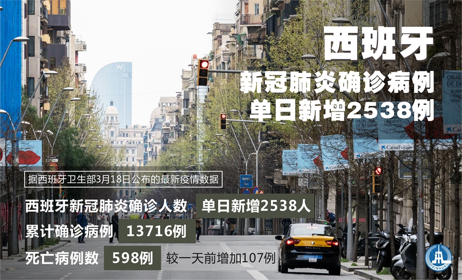 新華社馬德里3月18日電(謝宇智)據西班牙衛(wèi)生部18日公布的最新疫情數據,西班牙新冠肺炎確診人數單日新增2538人,累計確診病例13716例。