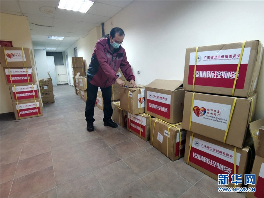3月28日,在塞爾維亞首都貝爾格萊德的中國赴塞爾維亞抗疫醫(yī)療專家組駐地,專家組成員龍其穗整理清點物資,為第二天使用的防護用具做好準備。這是他每晚必做的工作。新華社發(fā)(專家組供圖)