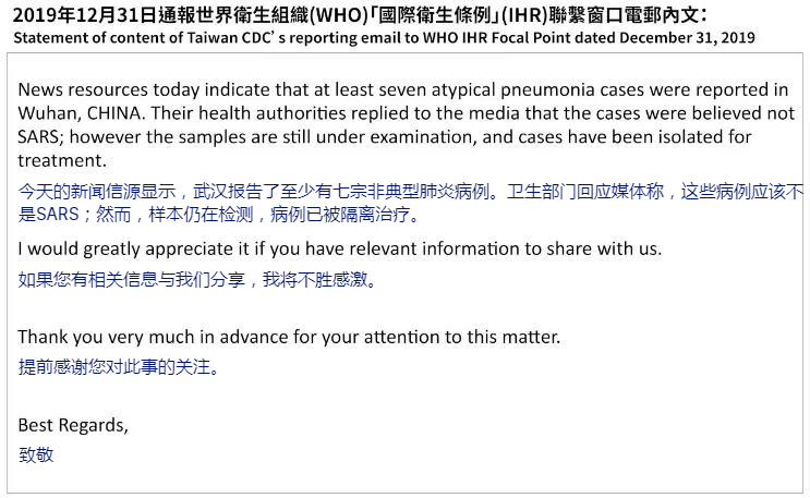 謊言17:臺(tái)灣早在2019年12月31日就向世衛(wèi)組織發(fā)出關(guān)于新冠肺炎人傳人的警告,但未獲得重視。