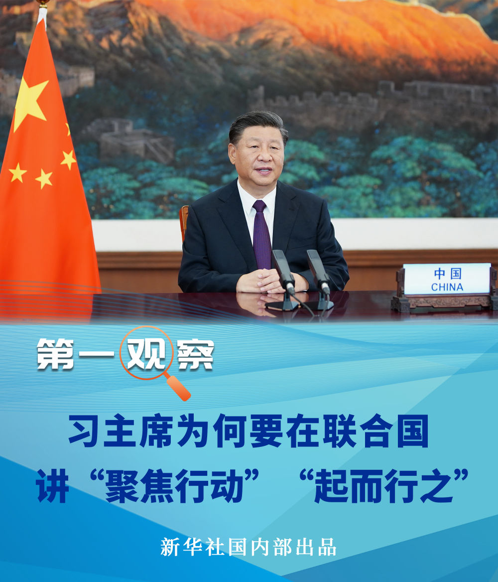 21日,在聯(lián)合國成立75周年紀念峰會上,習(xí)近平主席就聯(lián)合國如何發(fā)揮作用提出四點建議,其中點出“聚焦行動”這一關(guān)鍵詞,強調(diào)“不能只開藥方,不見療效”。