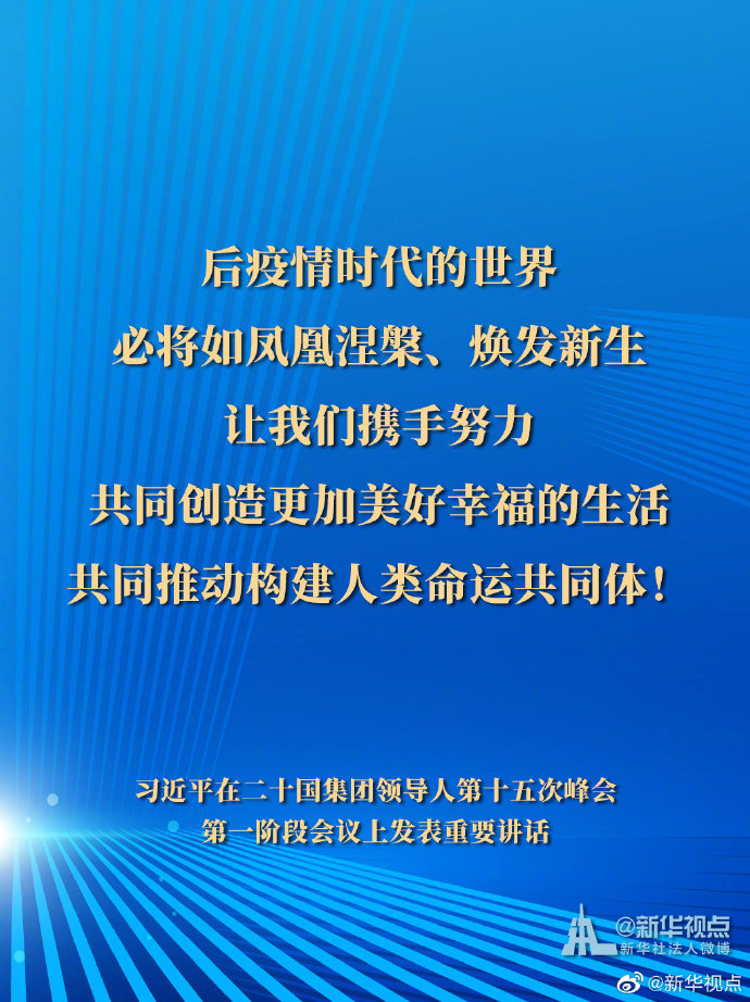 11月21日,國家主席習(xí)近平在二十國集團(tuán)領(lǐng)導(dǎo)人第十五次峰會第一階段會議上發(fā)表重要講話。一起來看習(xí)主席的G20金句。