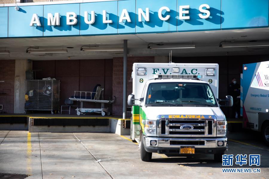 12月3日,在美國紐約,救護(hù)車停在一家醫(yī)院的急診室外。
