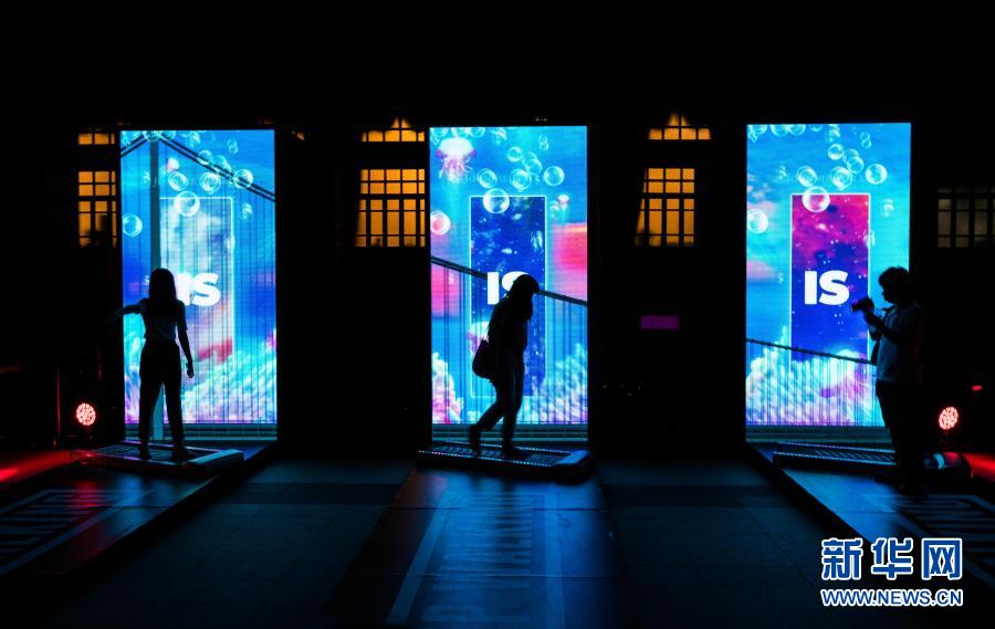 12月15日,游客在泰國(guó)曼谷參觀(guān)“覺(jué)醒曼谷”主題燈光藝術(shù)節(jié)上的一件互動(dòng)燈光藝術(shù)作品。