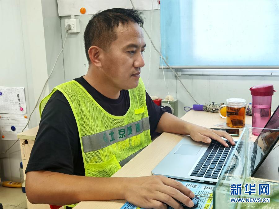 劉平建經(jīng)常在工地辦公,在回到營地摘下口罩擦汗的一瞬間,記者注意到,由于長期佩戴口罩暴露在烈日之下,他的臉上已經(jīng)留下一道鮮明的口罩印。