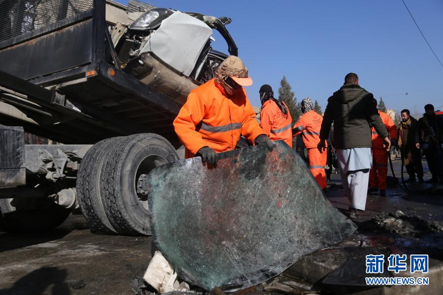 12月22日,在阿富汗首都喀布爾,工作人員清理爆炸現(xiàn)場。新華社發(fā)(賽義德攝)