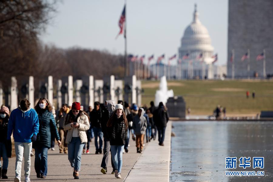 12月27日,人們在美國華盛頓的國家廣場漫步。