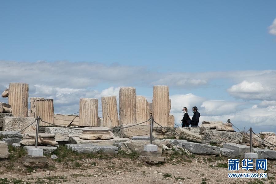 3月22日,游客游覽希臘雅典衛(wèi)城。希臘露天考古遺跡22日起恢復(fù)開(kāi)放。游客需遵守保持社交距離和佩戴口罩等防疫規(guī)定。新華社發(fā)(萊夫特里斯·帕察里斯攝)