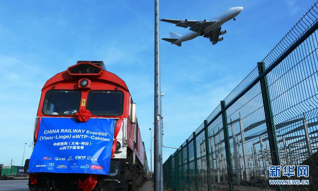 2019年10月25日,滿載著82個(gè)標(biāo)準(zhǔn)箱的中歐班列(義烏—列日)“世界電子貿(mào)易平臺(tái)(eWTP)菜鳥(niǎo)號(hào)”首趟列車(chē)抵達(dá)比利時(shí)列日物流多式聯(lián)運(yùn)貨運(yùn)場(chǎng)站。新華社記者 潘革平 攝