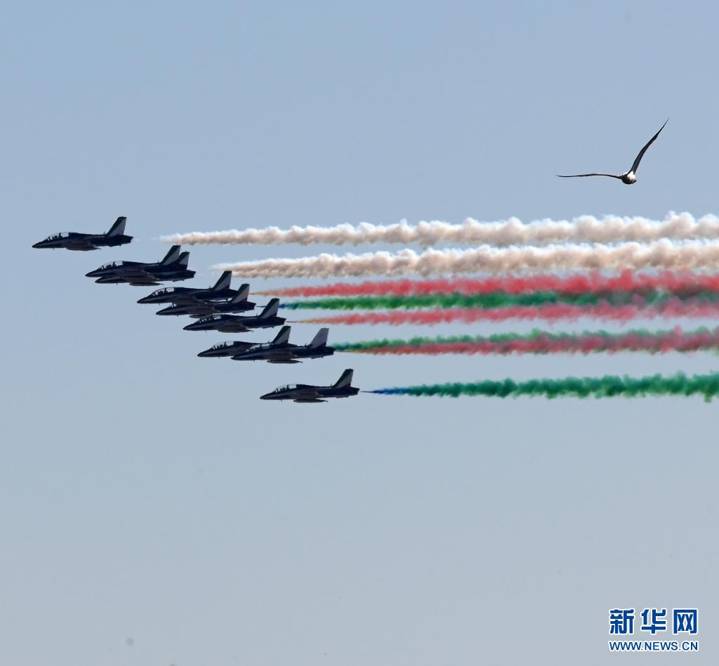 4月25日,意大利“三色箭”飛行表演隊在羅馬舉行的紀念儀式上噴出代表意大利國旗顏色的紅白綠三色煙霧。