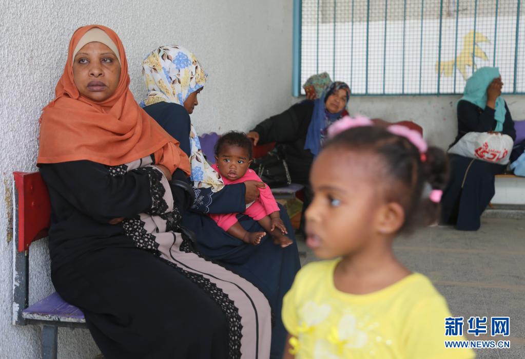5月17日,受巴以沖突影響而逃離家園的巴勒斯坦婦女和兒童在加沙地帶拉法的一所學校臨時棲身。