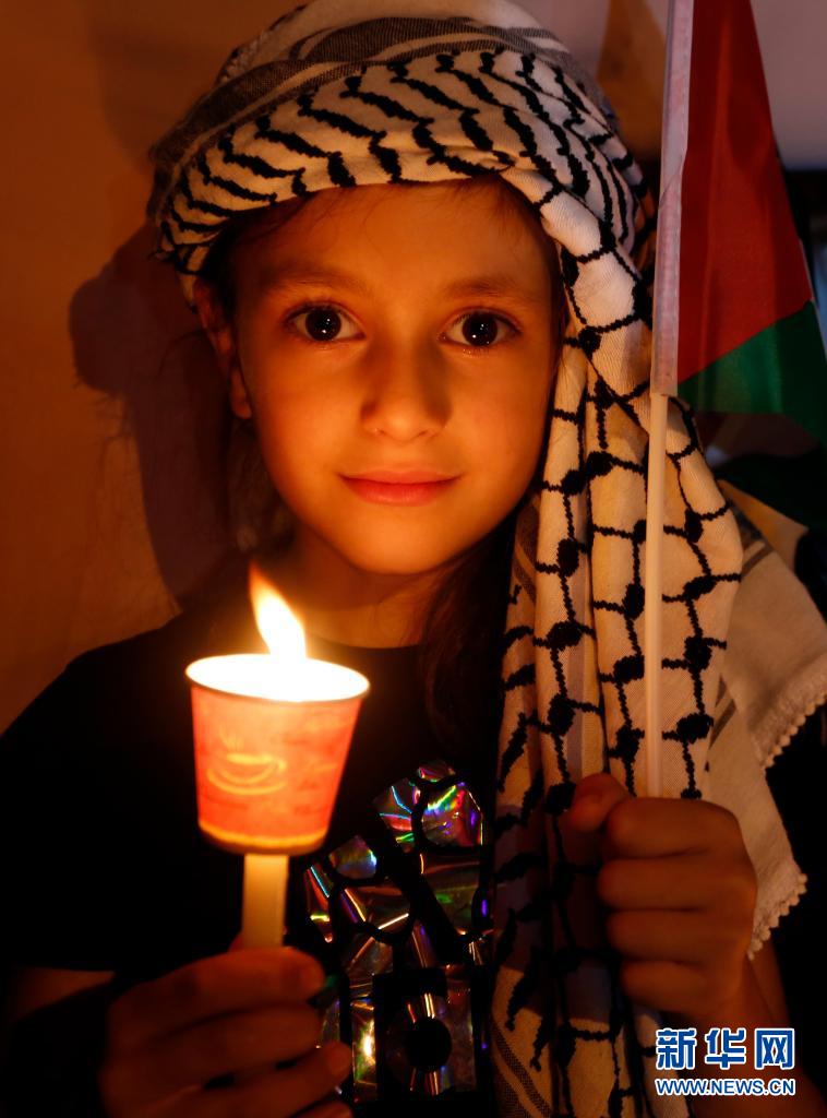 5月20日,一名兒童在約旦河西岸城市納布盧斯參加聲援活動(dòng)。
