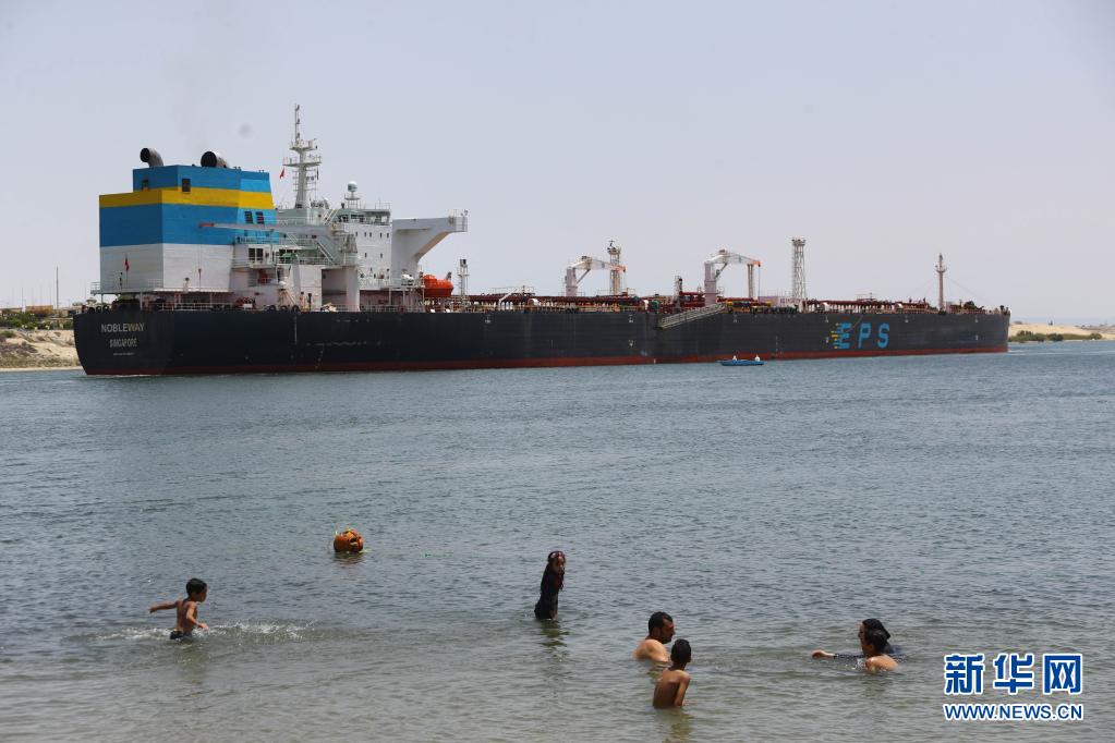 這是5月30日在埃及伊斯梅利亞省拍攝的航行在蘇伊士運河上的貨船。