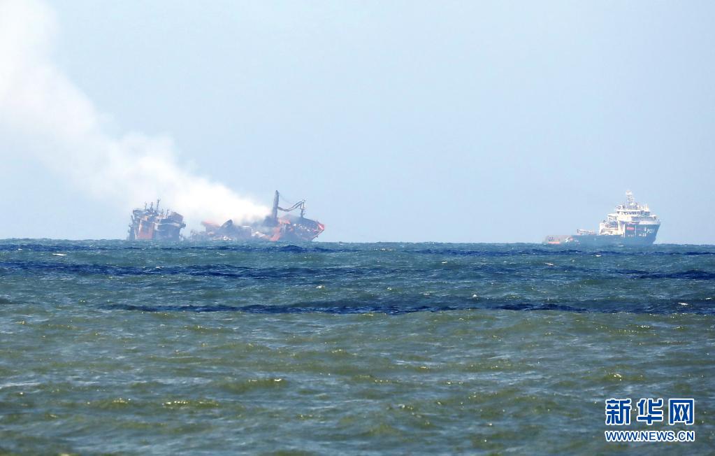 6月2日,斯里蘭卡總統(tǒng)戈塔巴雅下令將起火貨船“X-PRESS PEARL”號拖向遠離科倫坡港的深海區(qū),以防引發(fā)更大的環(huán)境災(zāi)難。“X-PRESS PEARL”號貨船5月20日抵達科倫坡港西北約9.5海里錨地時發(fā)出火警求救信號。斯里蘭卡海洋環(huán)境保護局官員5月28日表示,在科倫坡港附近起火燃燒的“X-PRESS PEARL”號貨船預(yù)計將會引發(fā)嚴(yán)重環(huán)境災(zāi)難。新華社發(fā)(阿吉特·佩雷拉攝)