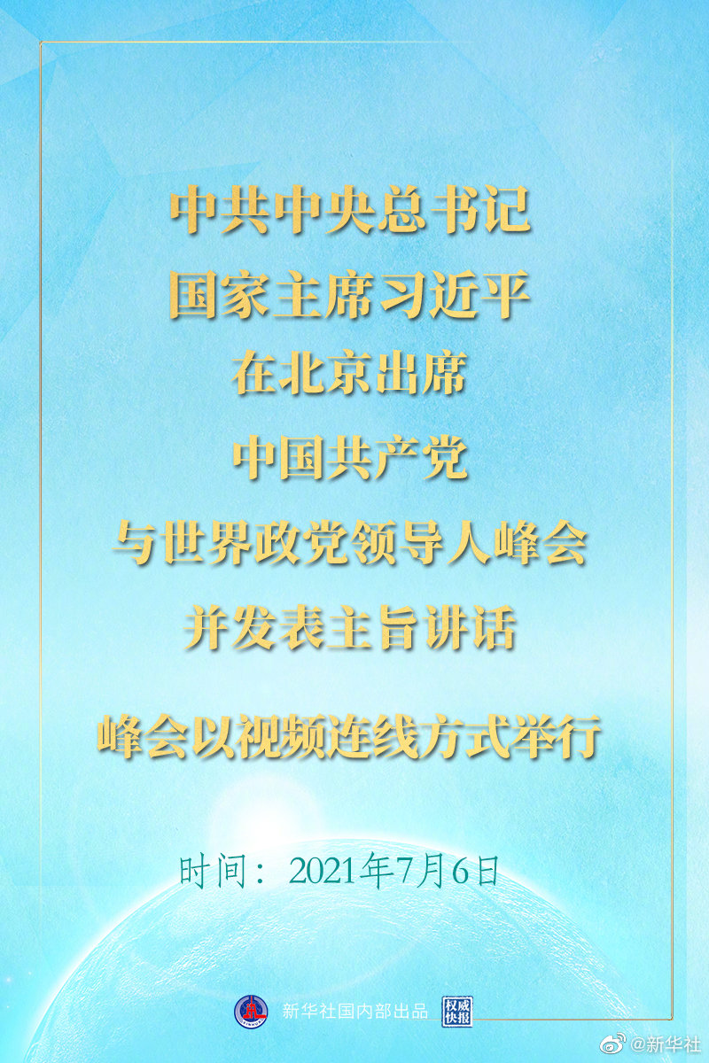 7月6日晚,中共中央總書記、國家主席習近平在北京出席中國共產黨與世界政黨領導人峰會并發(fā)表主旨講話。峰會以視頻連線方式舉行。