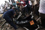 營救人員在墜機現場抬運遇難者遺體