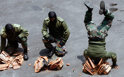 馬來西亞士兵表演“頭碎壘磚”(組圖)