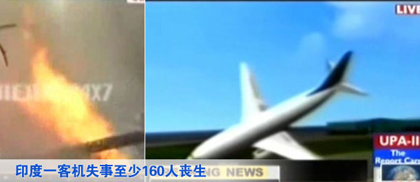印度一客機(jī)失事 至少160人喪生